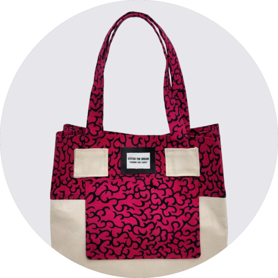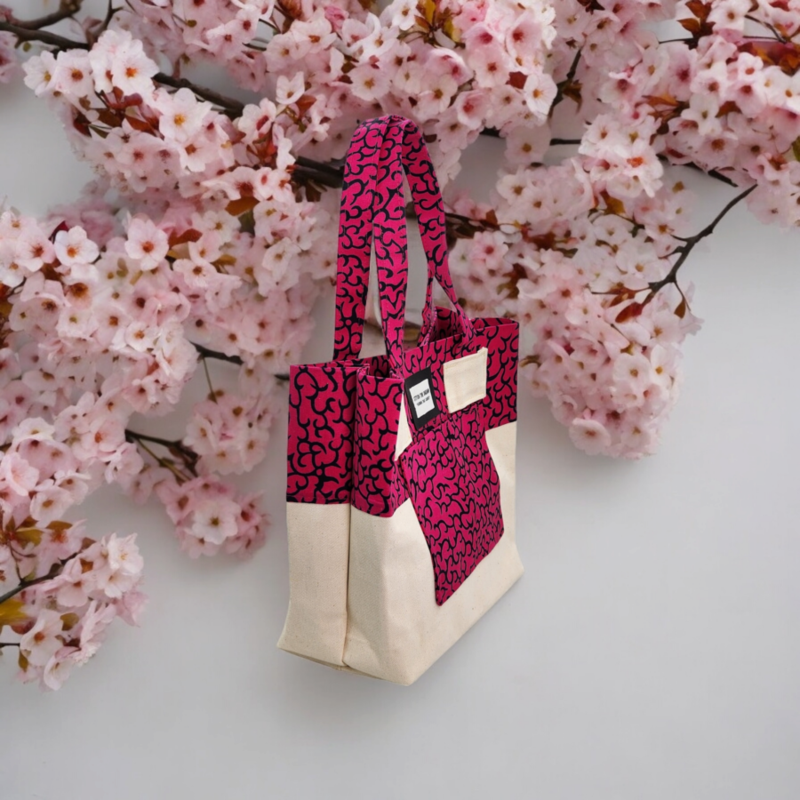 Our fabulous Ca-Nkara Shoulder Bag, where style meets culture in a delightful fusion of canvas and Ankara fabric.