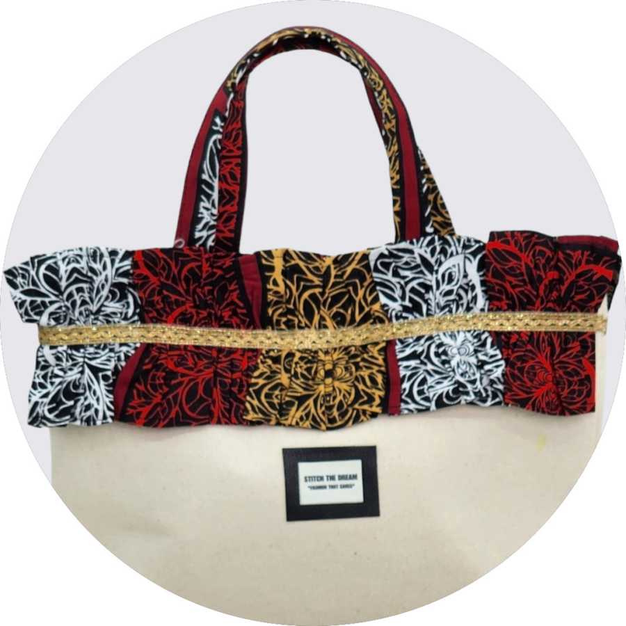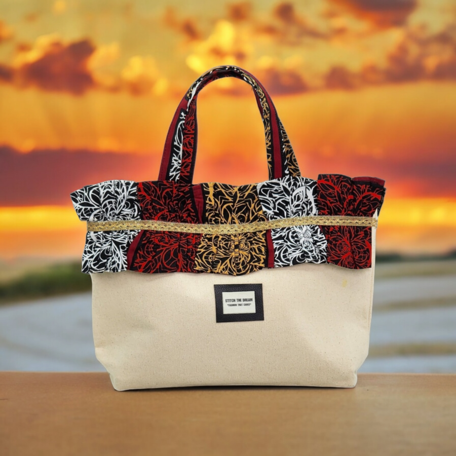 “Introducing the Canvas and Ankara Tote bag, a luxurious and stylish addition to your collection. Crafted from high-quality material and exquisitely designed, this hand bag is perfect for any occasion. Its spacious interior and thoughtful compartments make it both practical and chic. Available in beige and with a  colorful deco, this iconic piece is a must-have for fashion enthusiasts. Elevate your look with the timeless elegance of Stitch the Dream.”