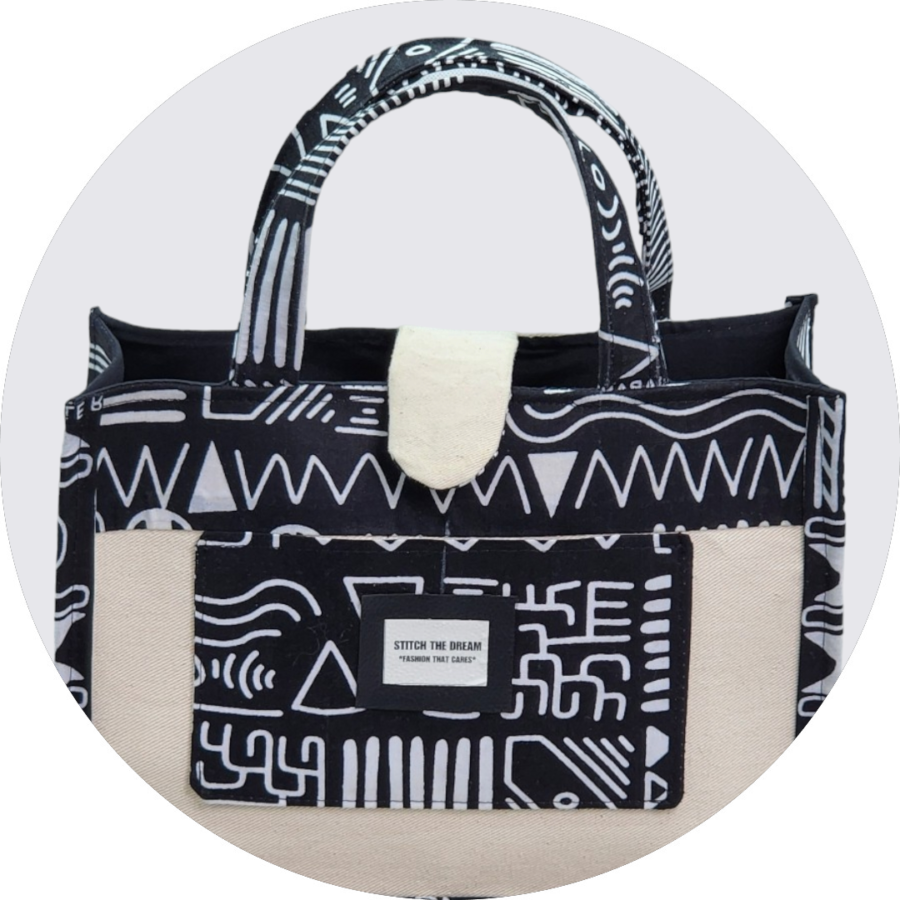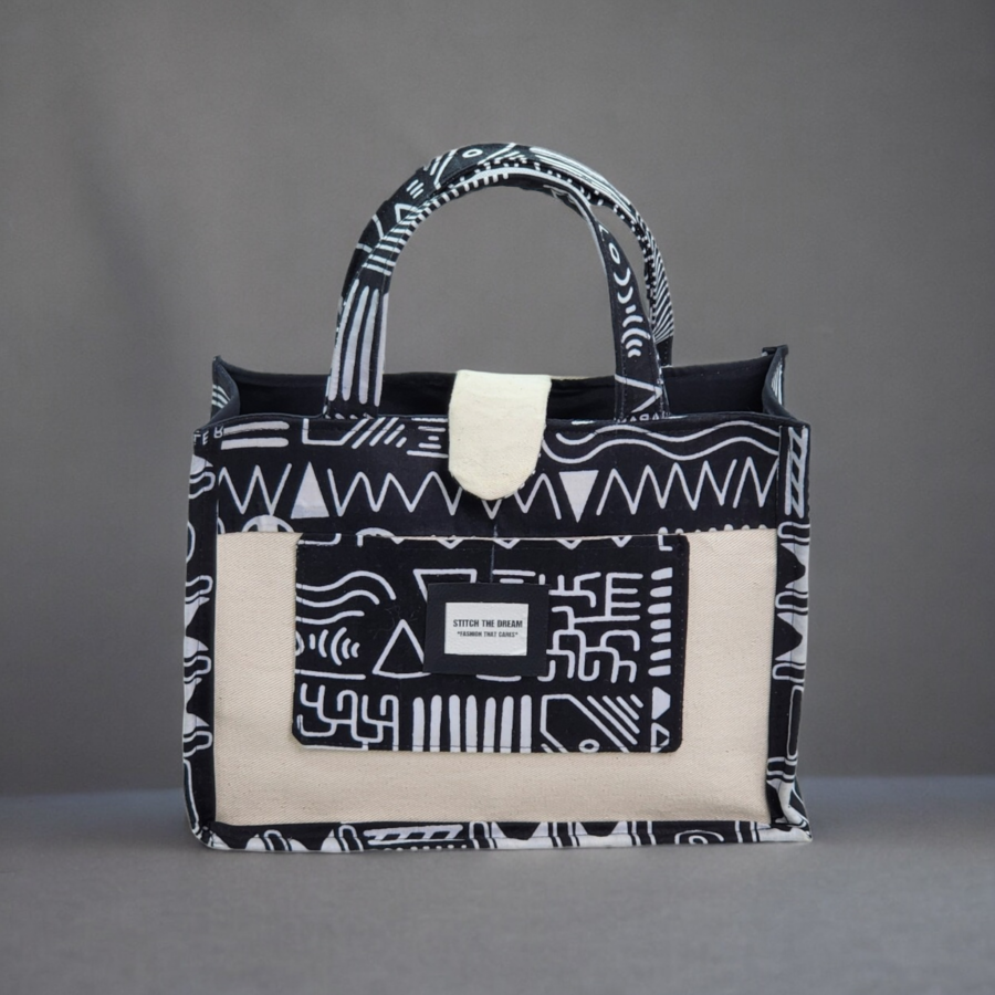 Canvas and Ankara Office Tote Bag with Cotton Lining – Embrace Culture in Style